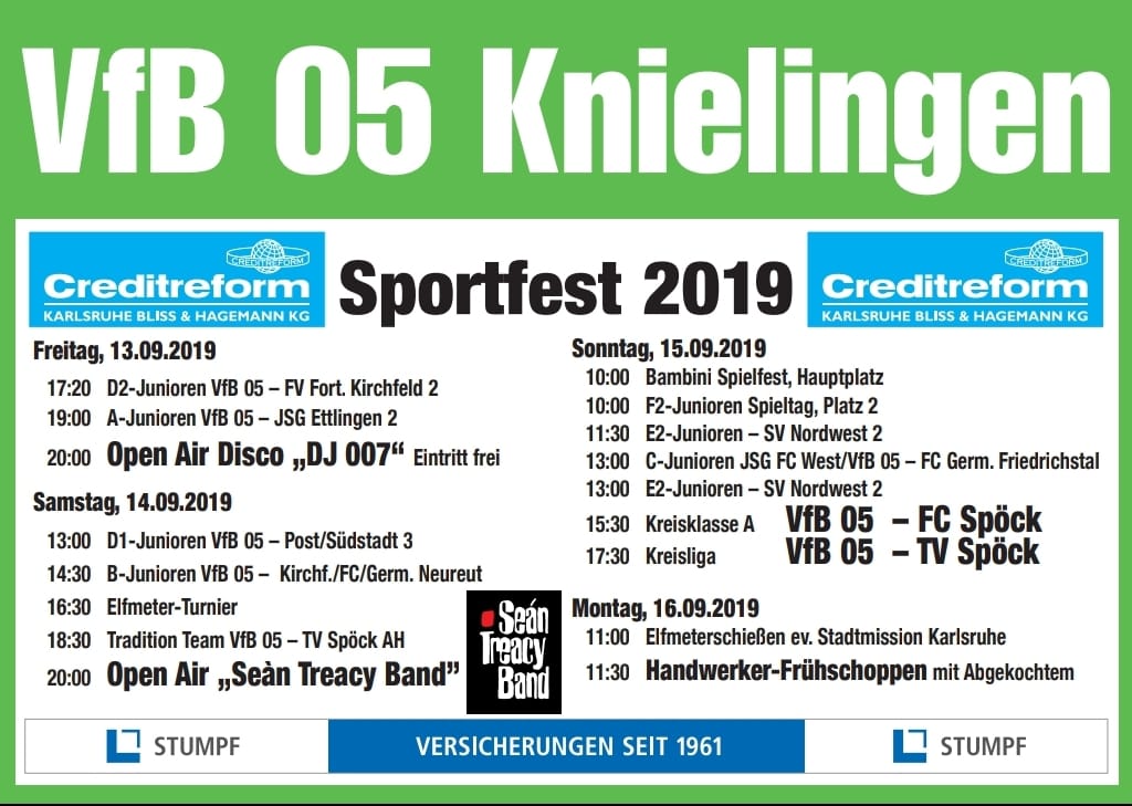 9. September 2019AdminHinterlasse einen Kommentar auf Sportfest 2019 Sportfest 2019 Der VfB freut sich auf das traditionelle Sportfest vom 13. bis zum 16.09.2019 mit bunter Unterhaltung und spannenden Spielen an allen Tagen. Für das leibliche Wohl wird bestens gesorgt! Teilen mit: Auf Facebook teilen (Wird in neuem Fenster geöffnet) Facebook Auf WhatsApp teilen (Wird in neuem Fenster geöffnet) WhatsApp Auf X teilen (Wird in neuem Fenster geöffnet) X Einen Link per E-Mail an einen Freund senden (Wird in neuem Fenster geöffnet) E-Mail Drucken (Wird in neuem Fenster geöffnet) Drucken Mehr Auf Reddit teilen (Wird in neuem Fenster geöffnet) Reddit Ähnliche Beiträge