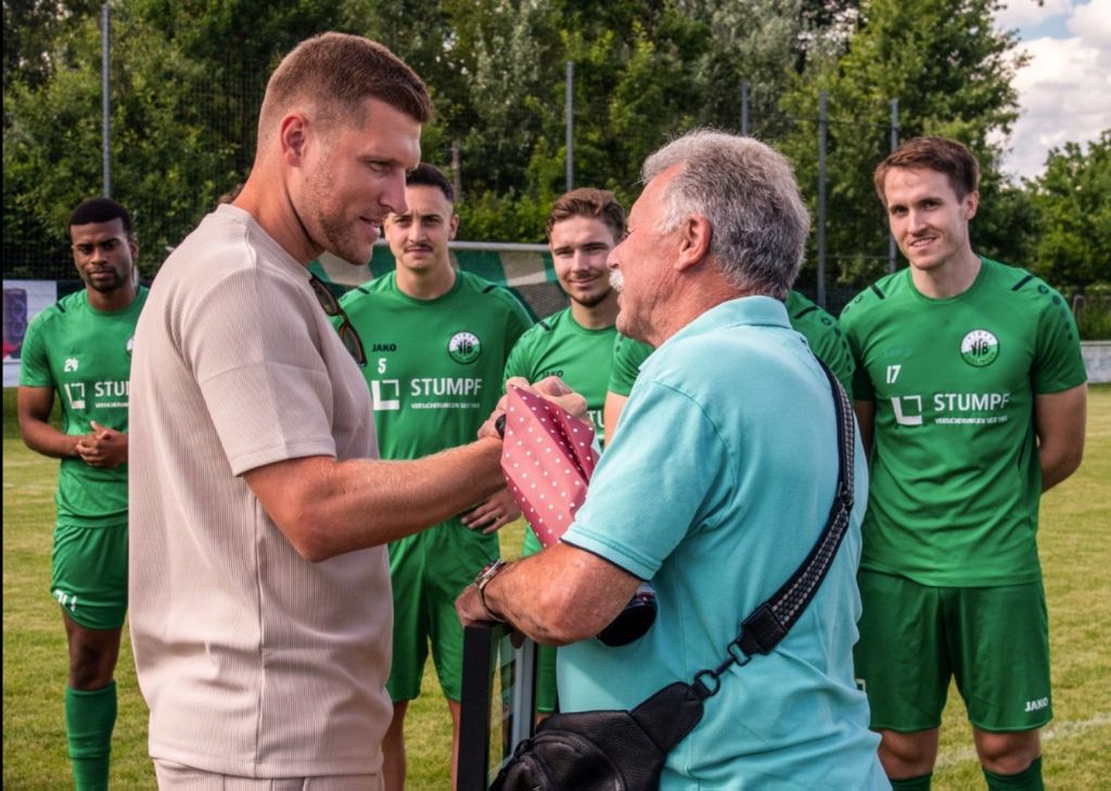 Der VfB 05 Knielingen verabschiedete im Rahmen seines Sportfestes seinen langjährigen Spieler Dominik Hötzel. Dome war seit der Saison 2015/16 Teil des VfB 05. Seit vielen Jahren war er Kapitän unserer Mannschaft und zeigte sich daher sowohl auf, als auch abseits des Platzes als wichtiges Vereinsmitglied. Im Laufe der Jahre kam er auf über 150 Pflichtspiele für die Holzbiere.