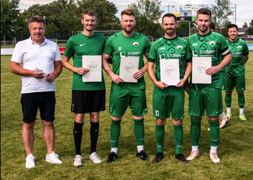 Die Spieler Aaron Stumpf, Michael Kosic und Julian Gebele wurden vom badischen Fußballverband für mindestens 10 Jahre durchgehende und vorbildliche Arbeit als Spieler beim VfB 05 Knielingen geehrt.