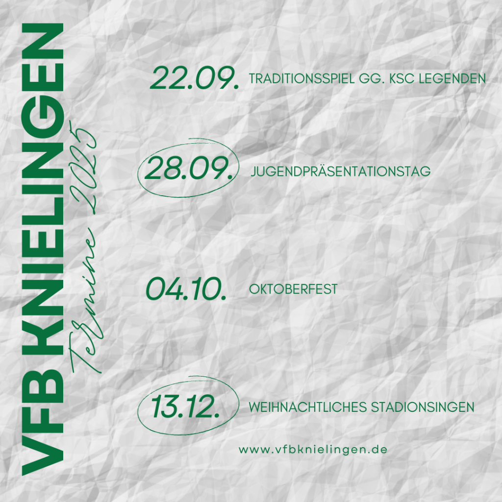 2. September 2025AdminHinterlasse einen Kommentar auf VfB Events 2025 VfB Events 2025 Der VfB freut sich auf viele weitere Highlights im Kalenderjahr 2025 🥳 hier kommt der aktualisierte Eventkalender 💚 Teilen mit: Auf Facebook teilen (Wird in neuem Fenster geöffnet) Facebook Auf WhatsApp teilen (Wird in neuem Fenster geöffnet) WhatsApp Auf X teilen (Wird in neuem Fenster geöffnet) X Einen Link per E-Mail an einen Freund senden (Wird in neuem Fenster geöffnet) E-Mail Drucken (Wird in neuem Fenster geöffnet) Drucken Mehr Auf Reddit teilen (Wird in neuem Fenster geöffnet) Reddit Ähnliche Beiträge